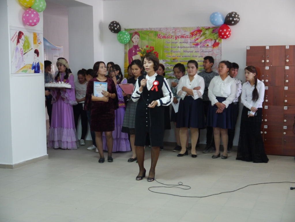 Апталық «Ұстаз-ұлағатты тұлға» тақырыбында мерекелік кешпен қорытындыланды. Кеш барысында колледж студенттері оқытушыларға аранлған ыстық лебіздерін әдеби-музыкалық монтаж арқылы білдірді. Колледж директоры Айкенов Исламбек Сәдібекұлы ұжымды төл мерекесі мұғалімдер күнімен құттықтап және де шығармашылықпен жұмыс жасап, оқу-тәрбие жұмысында белсенділік танытып жүрген ұстаздарымызды Облыстық «Нұр Отан» партиясының, облыстық кәсіподақ комитетінің және колледж директорының алғыс хаттарымен марапаттады. Кеш соңы студенттеріміздің әсем әні мен күйіне жалғасты.