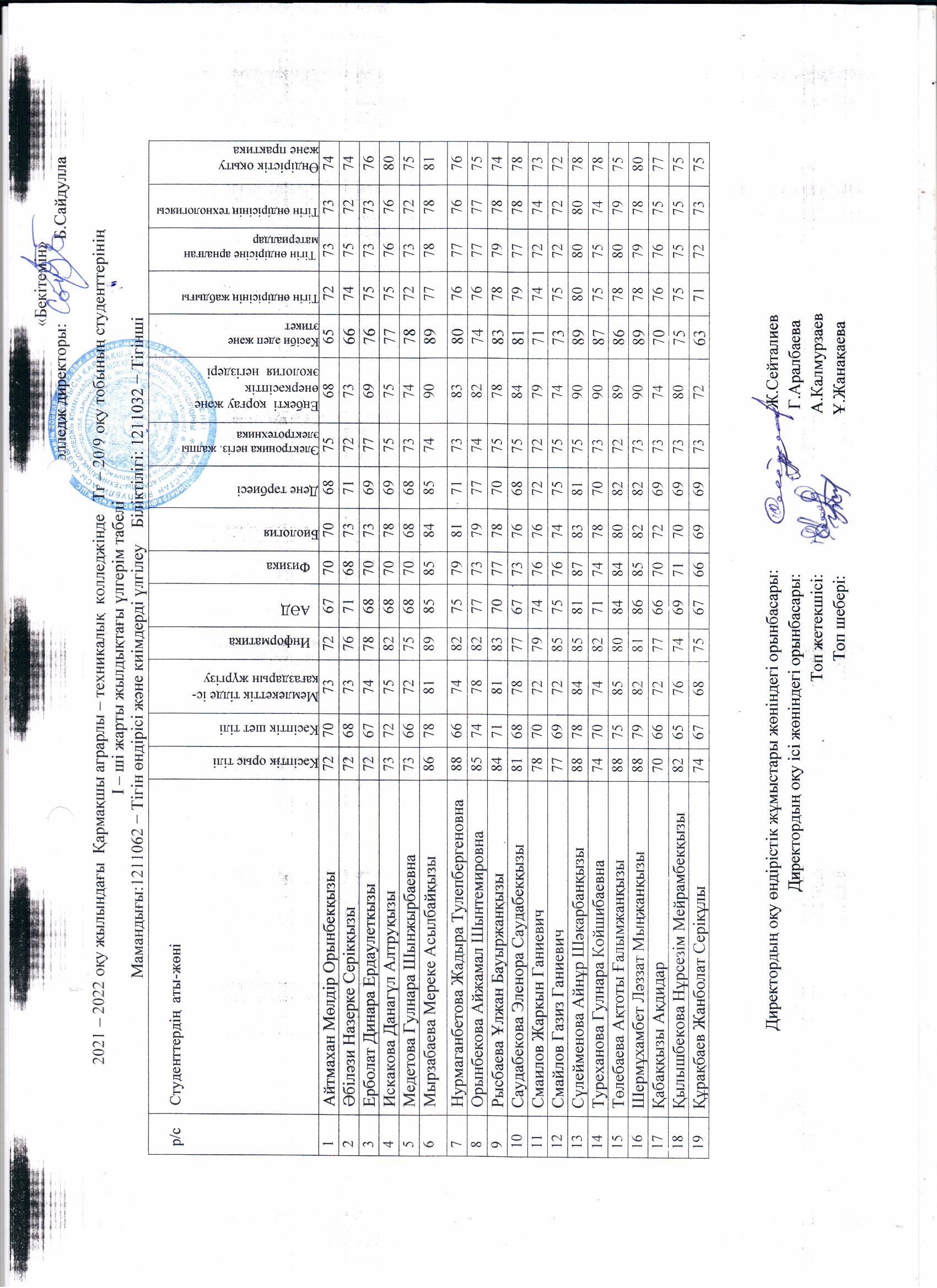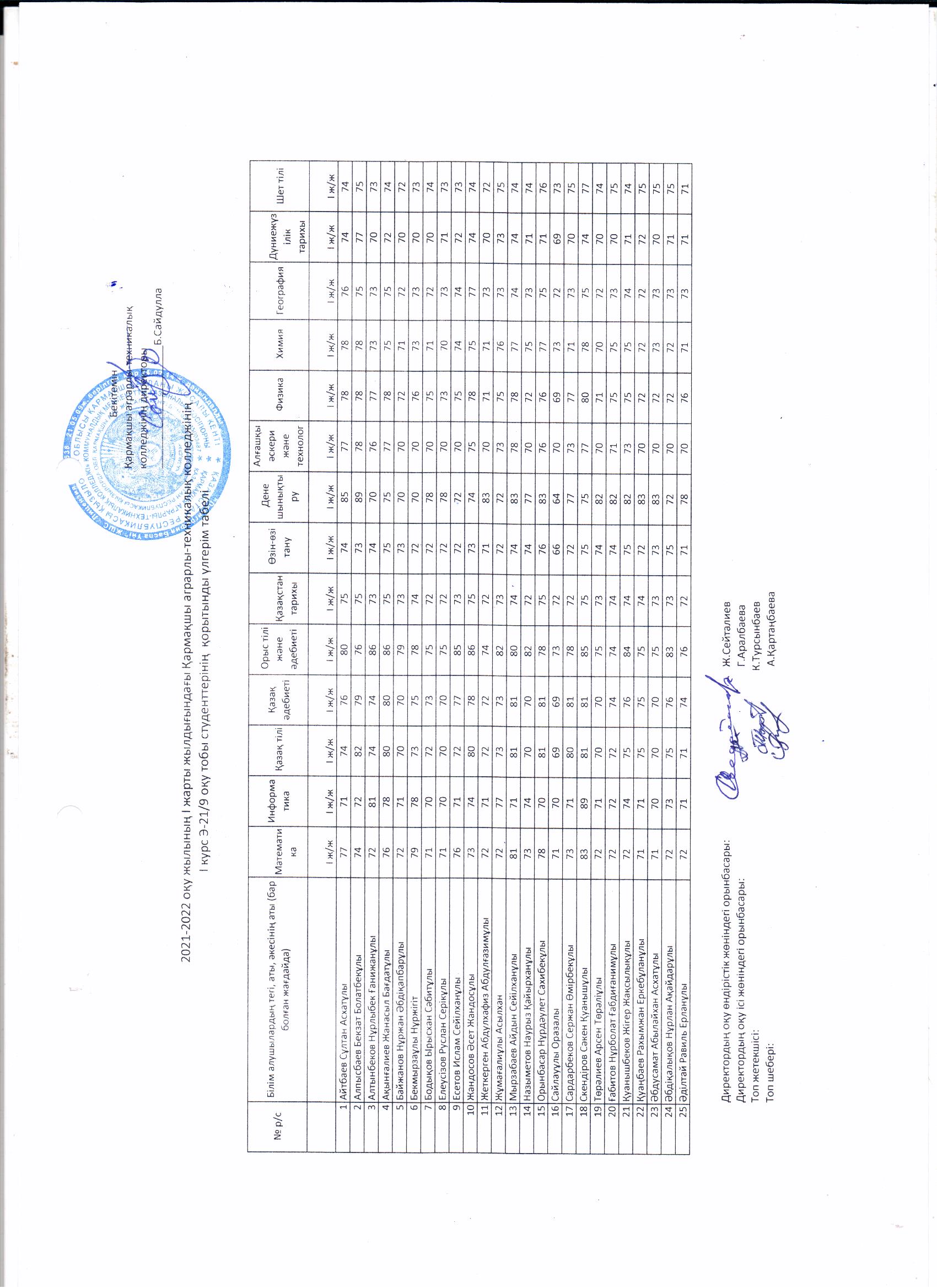 Басты бет 2021 2022 оқу жылының бірінші семестр бойынша білім алушылардың оқу үлгерім көрсеткіші Басып шығару 2021 2022 оқу жылының бірінші семестр бойынша білім алушылардың оқу үлгерім көрсеткіші
