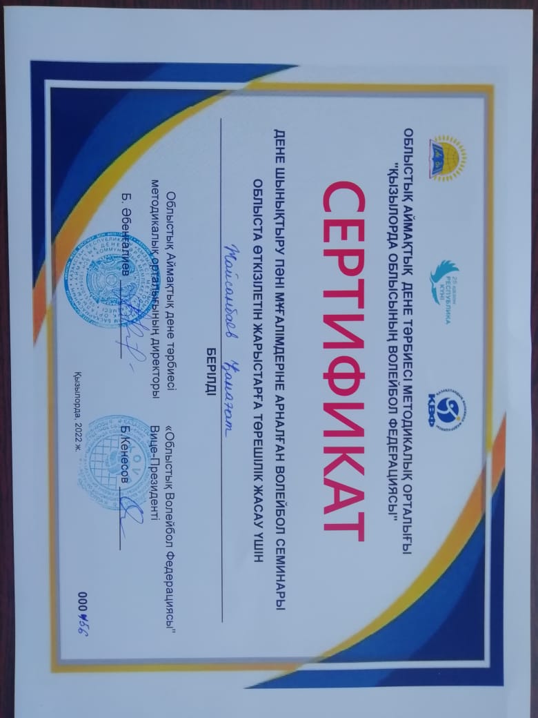 27 қазан күні  Облыстық Аймақтық дене тәрбиесі методикалық орталығының ұйымдастыруымен өткен дене шынықтыру пәні  мұғалімдеріне арналған  ВОЛЕЙБОЛ СЕМИНАРЫНА  Қармақшы аграрлы-техникалық  колледжінің   дене шынықтыру пәні оқытушысы Қ.Жайсаңбаев қатысып, облыста өткізілетін  жарыстарға төрешілік жасау сертификатына ие болды.