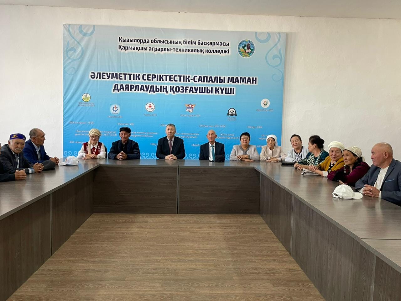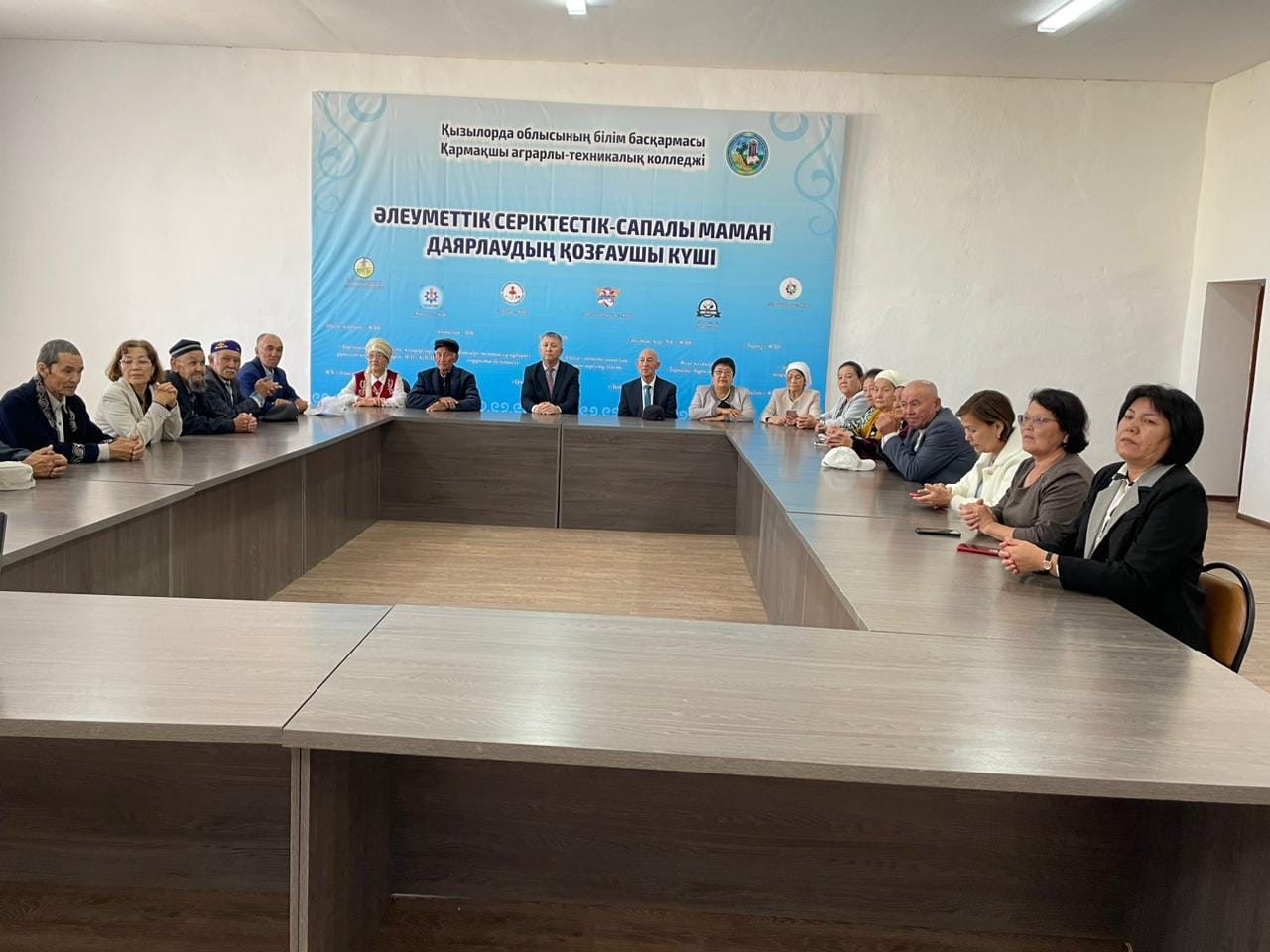Қармақшы аграрлы— техникалық колледжінде 2023 жылдың 29 қыркүйек күні 1 қазан Қарттар күніне орай «Қарттарын қадірлеген ел ардақты» атты колледждің қарттарын құрметтеу мақсатында мерекелік шара өтті. Мерекелік шараға көптеген жылдар еңбек еткен, қазіргі таңда еңбектің зейнетін көріп келе жатқан қарияларымыз қатысты. Колледж директоры Б. Сайдулла келген қонақтарымызға ізгі тілегін білдірсе, студенттер ән—би шашулары айтылды және кәсіподақ ұйымының атынан естелік сыйлықтар таратылды. Қонақтарымыз бүгінгі шараға өз ризашылықтарын білдіріп, жас жеткіншектерге ақ баталарын берді.