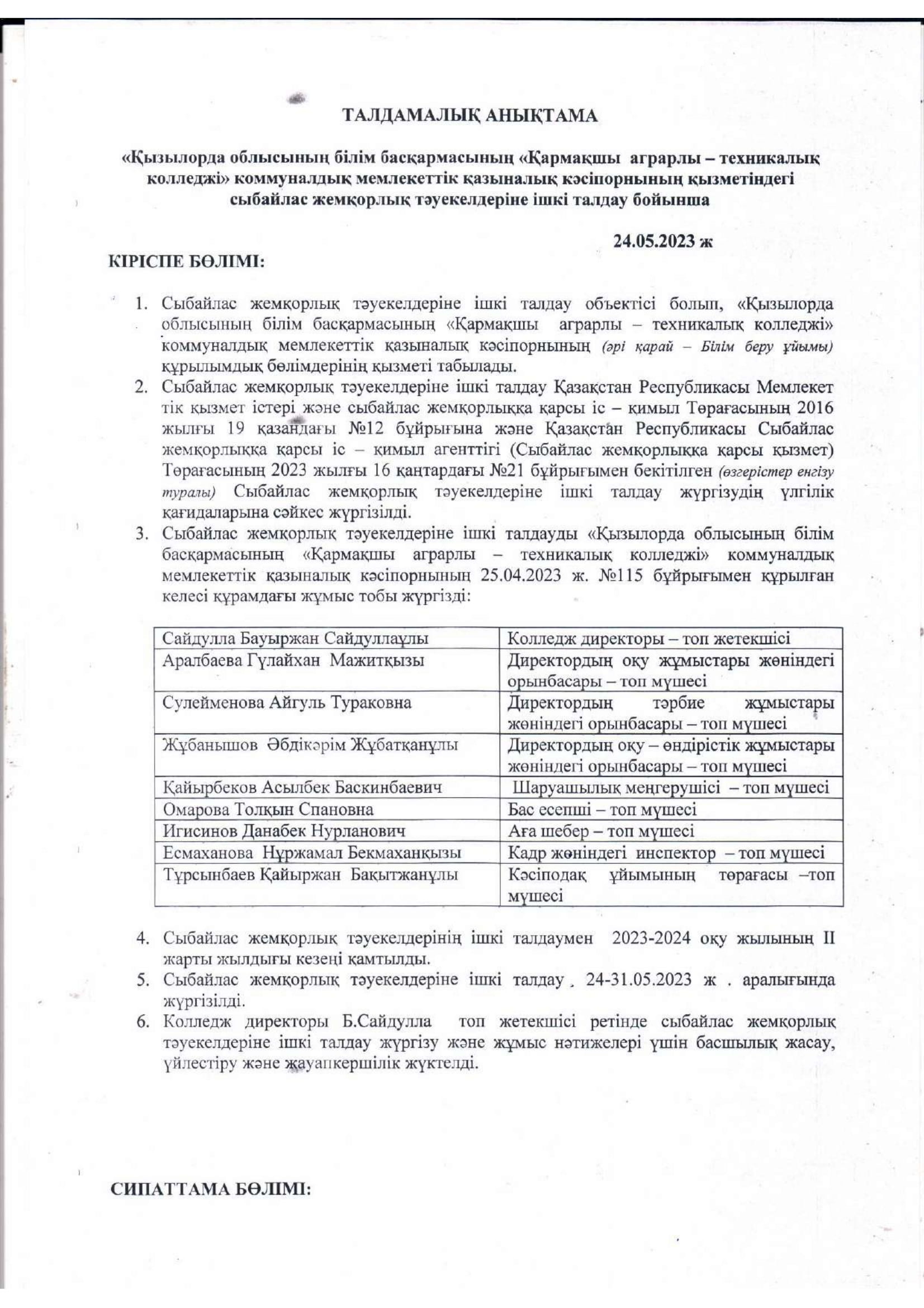 2025 жылдың 2 қыркүйек күні Қармақшы аграрлы - техникалық колледжінде білім күніне арналған “Білім күні: Бейбітшілік күні” атты салтанатты шара өтті .